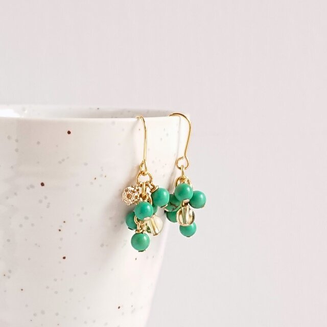 練ターコイズを使った、葡萄のようなデザインのピアスです。