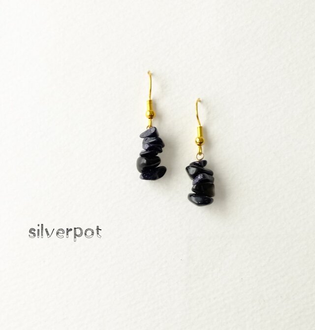 深いネイビーブラックの中にキラキラと内包物が輝く綺麗なブルーゴールドストーン(紫金石)です。 ヨーロッパを中心に世界中で人気のある人工石です。