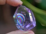 完璧なる原石研磨の透明世界の中に虹が見えます。