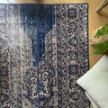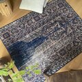 91×118ネイビー×ブラウン パッチワーク ボタニカル トルコヴィンテージラグ