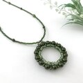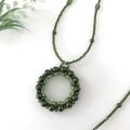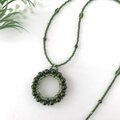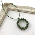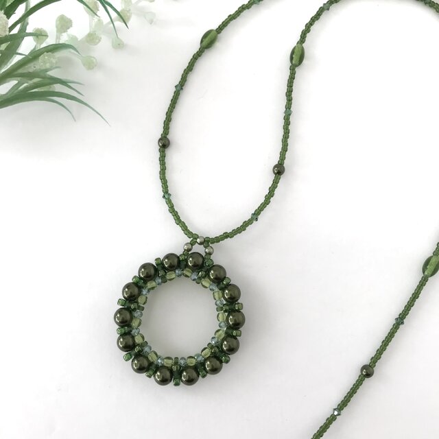 パール編みの サークル モチーフ ネックレス エメラルド グリーン 緑 ビーズ サークルネックレス 深緑