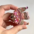 首元には色味の異なるピンク色のお花のスパンコールと羽先にはゴールドピンクのスパンコールをつけました。
