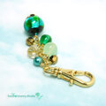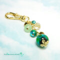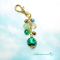 南国の海を閉じ込めたような、美しいエメラルドグリーンのホタル玉が揺れるキーホルダーです。