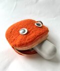 羊毛のおめめくりくりモンスターポーチ(オレンジ)