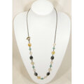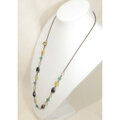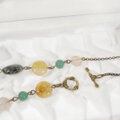 ブラックトルマリン・イン・クォーツやアベンチュリンなどの天然石ロングネックレスです。留め具はマンテルです。