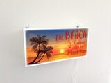 ★画鋲で壁に簡単設置★【夕焼け パームビーチ】電飾看板Lサイズです★