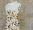 フレッシュなボタニカルオレンジ クラシカルワンピース バイカラー フレンチスリーブ ロールカラー