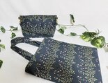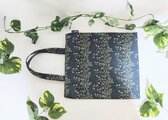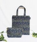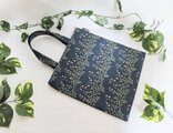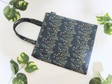 ネイビー地に可愛いベルフラワー柄のペタンコなトートバックです。