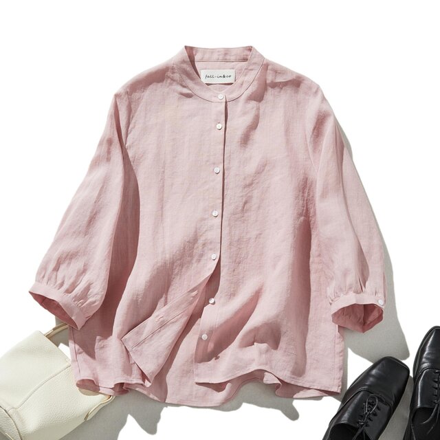 ナチュラルな風合いを持つ、上質な麻生地で仕立てたブラウス 七分袖ブラウス 薄いピンク240503-4