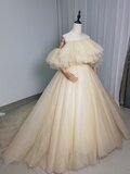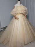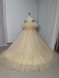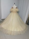 高品質!ウエディングドレス 薄シャンパンの色 オフショルダー ふわふわドレス 結婚式/拳式