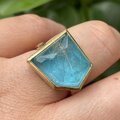 ルチルクォーツ × ターコイズ 変形5角形 立体カット シルバーSV925リング
