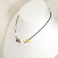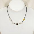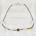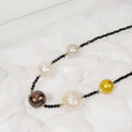 本真珠(淡水パール)とブラックスピネル、ヘマタイトのネックレス(天然石、マグネット、6月の誕生石、ホワイト、イエロー)