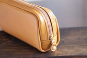 柔らかなポーチ 牛革 シュリンクレザー ペンケース キャメル 化粧ポーチ トラベルポーチ apo-06cs