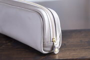 柔らかなポーチ 牛革 シュリンクレザー ペンケース グレージュ 化粧ポーチ トラベルポーチ apo-06cs