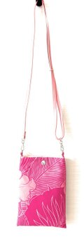 ハワイアン ファブリック スマホポーチ ショルダーストラップ付 オーキッド柄 ピンク [hpb3-131s20]