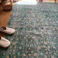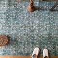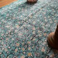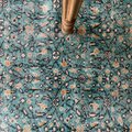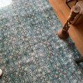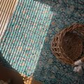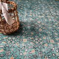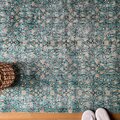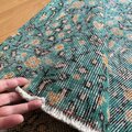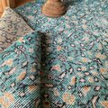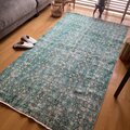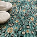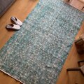 110×196 爽やかラムネグリーン 黄色 草花模様 トルコヴィンテージラグ