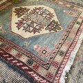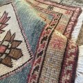 ヴィンテージラグは古い手織物のため使用感や糸のほつれ、補修跡、補強跡、ヨレやシミ、色むら、毛羽立ちなども見られる場合がございます。ヴィンテージラグの魅力としてご理解いただき、良いと思える方にご購入いただけると幸いです。