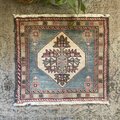 55×52 絶妙ブルー 小さめメダリオン トルコヴィンテージラグ
