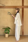 ・アイロンについて:シワが気になる場合は、あて布を使用し、低〜中温でやさしくアイロンをかけてください。スチームアイロンもご使用いただけますが、直接強い熱を当てすぎないようご注意ください。