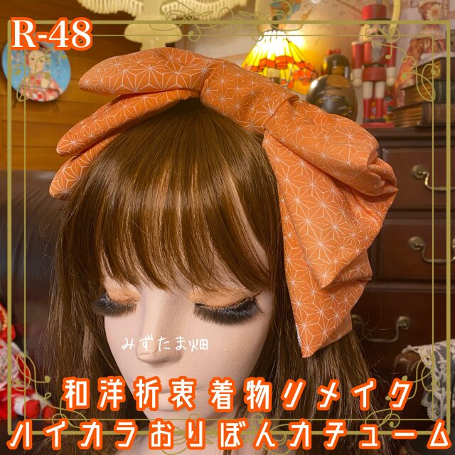 【 和洋折衷 着物リメイク ハイカラおりぼん カチューム カチューシャ ヘッドドレス ヘアアクセサリー 和ロリータ ハンドメイド モダン レトロ R-48】