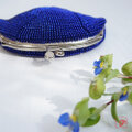 シルバーインサイドのブルーのシードビーズをひとつぶづつ全面に編み込んだ、
