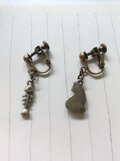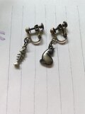 アンティークゴールドの猫ちゃんと魚の骨のチャームのイヤリングです。小ぶりで着けやすいイヤリングです。
