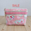 【値下げ】4段ファスナー+ポケットポーチ 優しいピンクの和柄 20cmバッグインバッグ 479