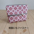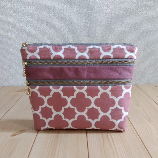 4段ファスナーポーチ+ポケット モロッカン柄 20cmバッグインバッグ ピンク×グレー 801