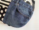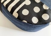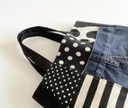 デニムのパッチワークバッグ ドット チェック モノトーン A4
