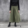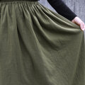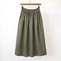 【即納】ふんわり柔らかスラブダブルガーゼのギャザースカート(カーキ)タンブラー加工 ロング