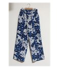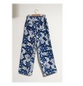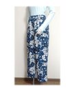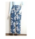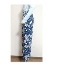 青い花柄の正絹着物リメイクテーパードパンツです。