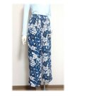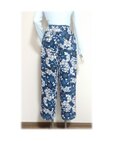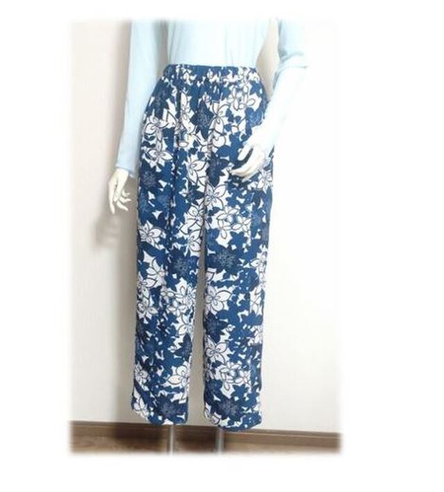 115 1点物 ワイドパンツ 着物リメイク 青い花柄 ロングパンツ テーパードパンツ