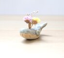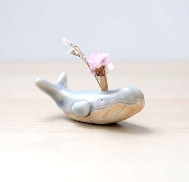 子クジラの花挿しオブジェ ブルーグレー * ドライフラワー付き