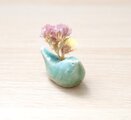 基本的にドライフラワーやアーティフィシャルフラワーなどを入れてお楽しみいただくことを想定しておりますが、もし生花を入れられたい場合には、背中の穴にスポイト等で水を入れていただくか、生花用スポンジを小さく切って穴に詰めるなどの方法をご検討ください。
