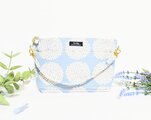 北欧柄サークルフラワーのサックスブルー色、綿オックス生地を使用しています。