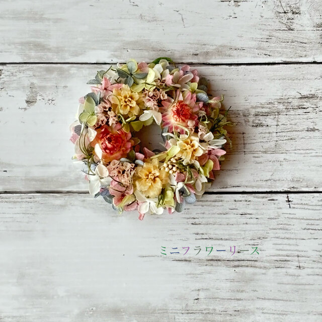 ドライフラワーとプリザーブドフラワーで作ったミニリースです。
