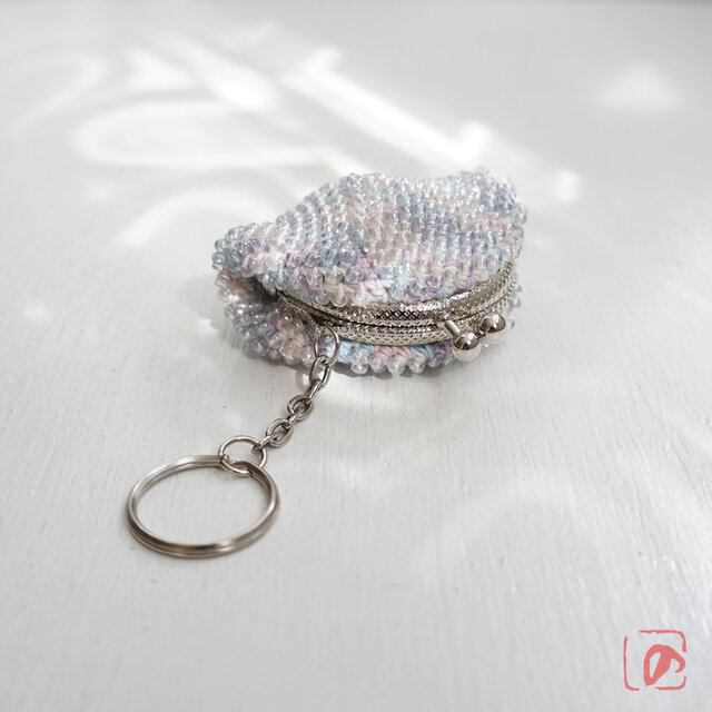 段染糸がクリアビーズに透けてキレイな編み地です。