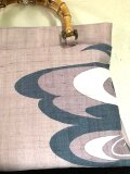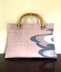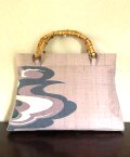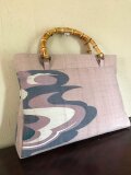 流水柄の紬袋帯を竹の手の手提げに仕立てました。