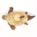 カメの頭と甲羅には、ウッドバーニングでフリーな線書きのイメージを描いております。