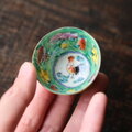 見込みに酉(鳥)◆中国出品 ライトグリーン 干支 色絵金彩小ぶり猪口 チャイナレトロ シノワズリ