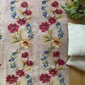 ほんの少し赤み感じる淡いベージュブラウンのベースに大柄な花柄。