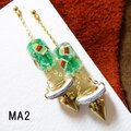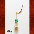 模様や柄は表面に描いたのではなく、ひとつずつパーツを作り、溶かしたガラスに埋め込みながら制作したオリジナルデザインのハンドメイドビーズです。