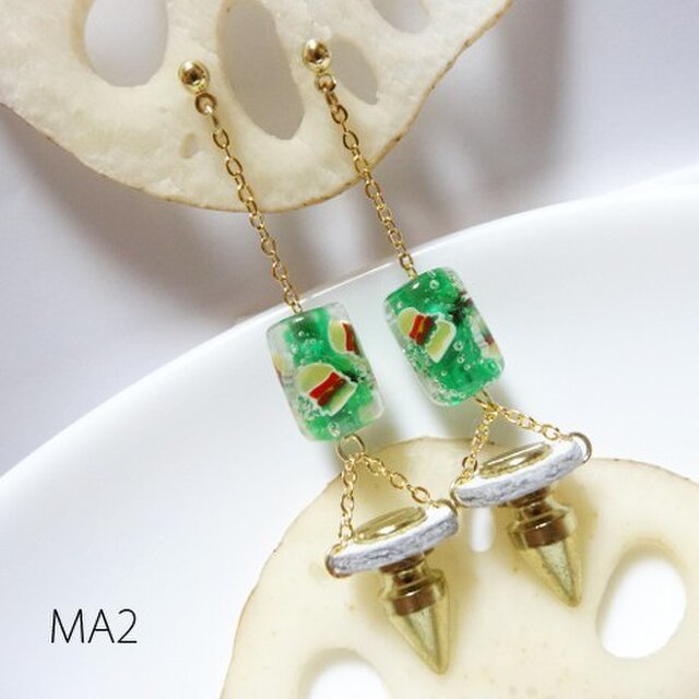 バーナーワークの技法で制作した、手作りのガラスビーズのピアスです。