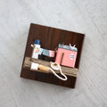 ねじ・釘(赤錆加工)、ホワイトウッド(欧州スプルース、ドイツトウヒなど)、ステイン、ペンキ等で製作。ヤスリでダメージ感を演出しています。「潮騒とカモメの鳴き声、風の音」を感じていただければ幸いです。※ベースは、杉(荒材)を使用しています。
