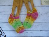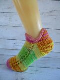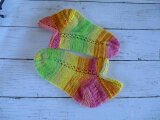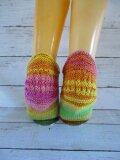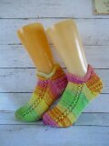 ドイツのブランド Rellana Garn Flotte Socke Baumwolle + Wolle Stretch Tutti Frutti 1411と名前のついている糸で編んだ chiharu.amukoのIDでインスタグラムで活動されている方のレシピで編んだコットンソックスです。