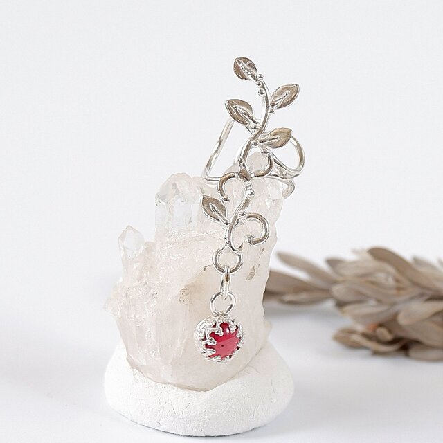 ~耳元に輝きを~ ルビーの蔓飾りイヤーカフ 左用 天然石アクセサリー 一点物