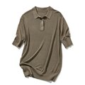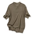 夏の新定番!リネン100%ポロシャツ 5分袖ニット オリーブ色 240527-1