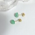 ぽってりとした可愛いハート型の透明な部分もある綺麗なミルキーグリーンカラーが特徴のクリソプレーズピアス。
