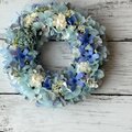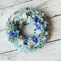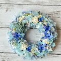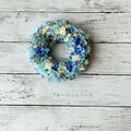 ソーラーローズとブルースターを使ったこれからの暑い季節に飾っていただきたいさわやかな印象のリースです。