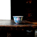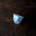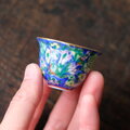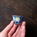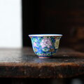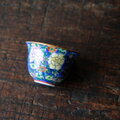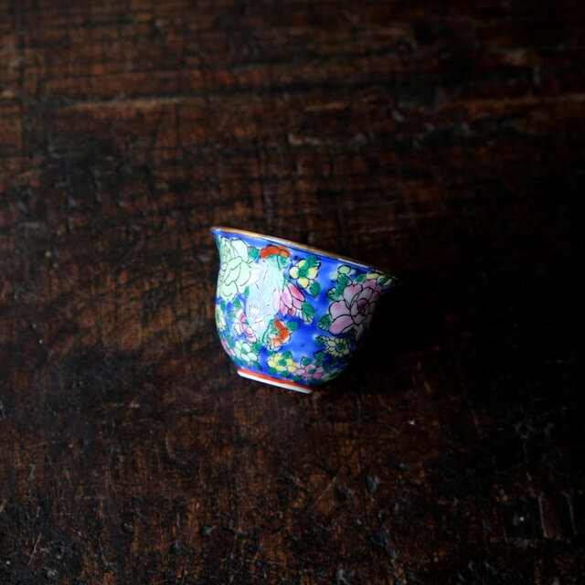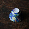青にカラフルな草花尽くし◆中国産 色絵小ぶり猪口 茶杯 煎茶茶器 器 シノワズリ #1